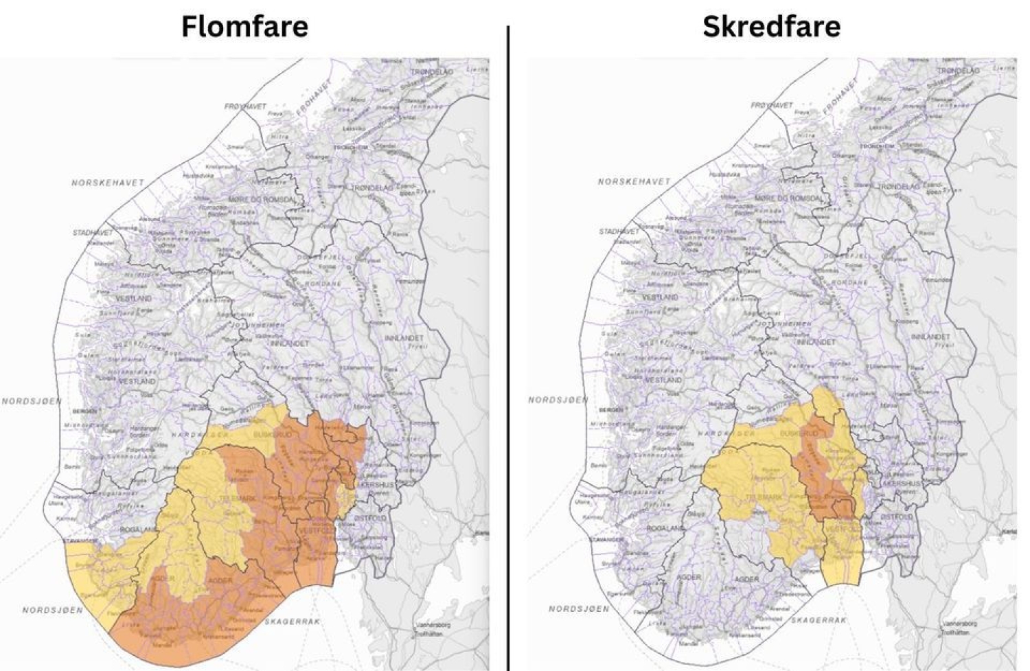 - Vi anbefaler alle å følge med på Varsom.no og forholde seg til informasjon som blir gitt fra den enkelte kommune, sier Skaugen.