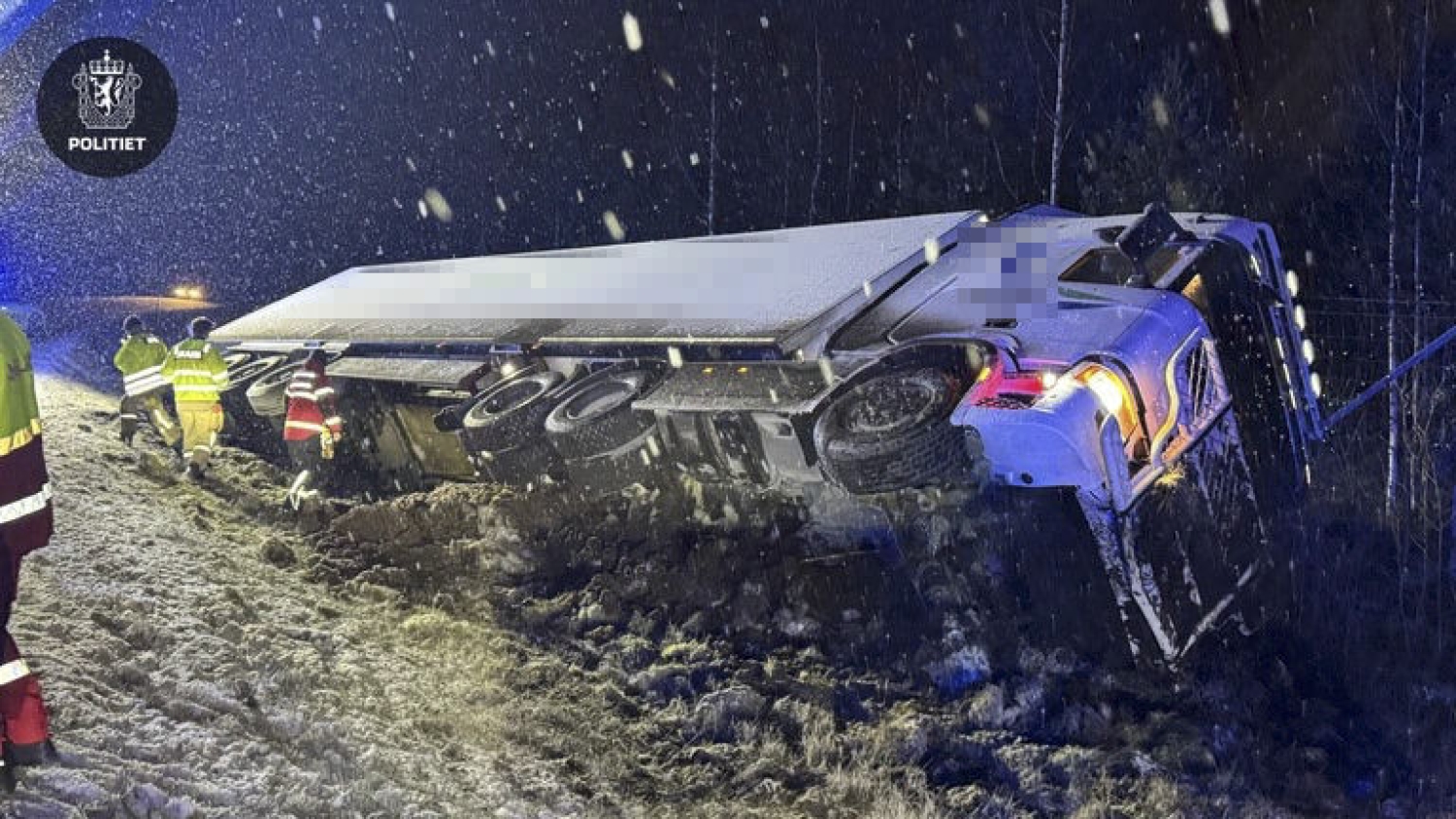 De første meldingene gikk ut på at sjåføren ikke kom seg ut, men etter hvert kunne politiet melde at vedkommende var ute – og ble sjekket av ambulansepersonell. Det lakk noe diesel fra lastebilen, ifølge politiet.